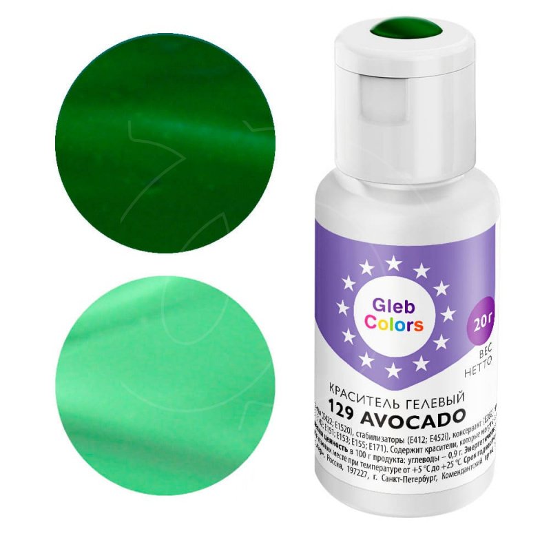 Доставка Краситель пищевой гелевый водорастворимый GLEB (CAKE) COLORS 129 Avocado 20 г из магазина в вашем городе: