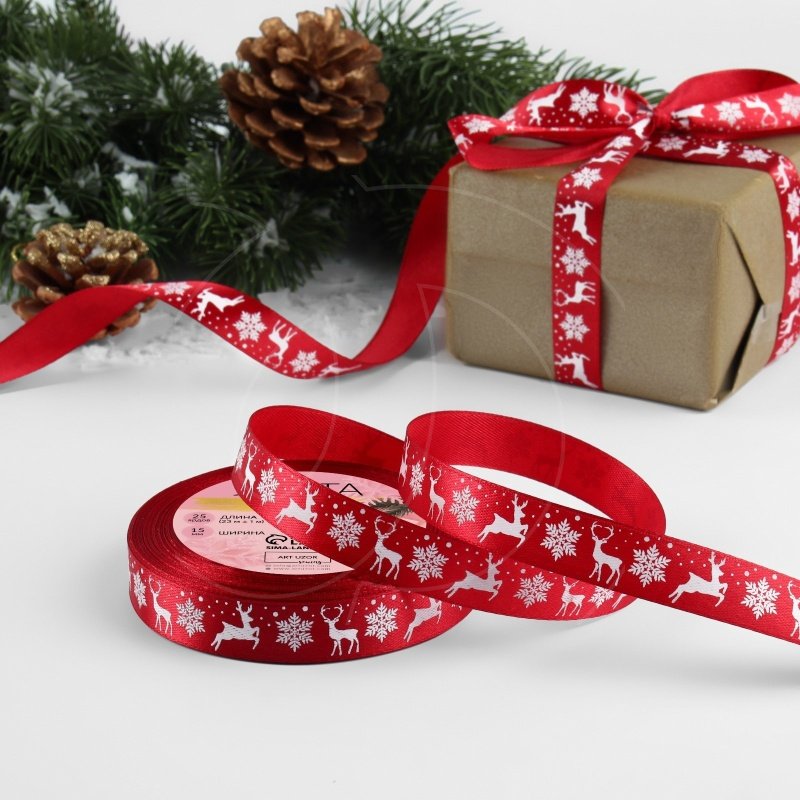 Доставка Лента для декора и упаковки "Олени" Красная 1,5 см из магазина в вашем городе: