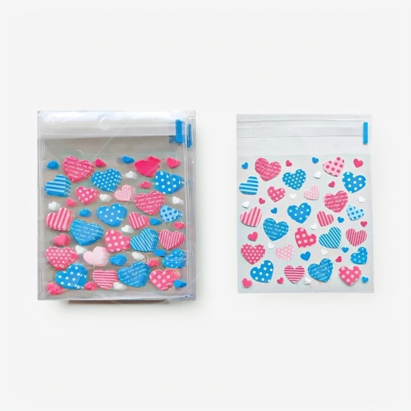 Пакетик прозрачный для сладостей "Сердечки розовые и голубые" 10х10 см 10 шт