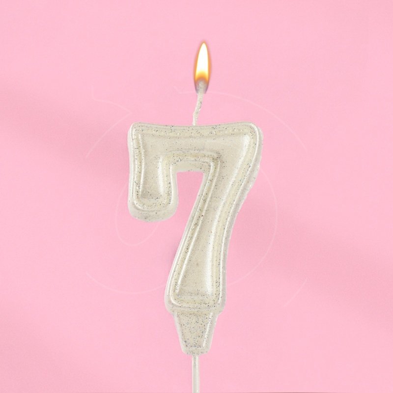 Свеча декоративная Цифра "7" Жемчужный перламутр с блёстками