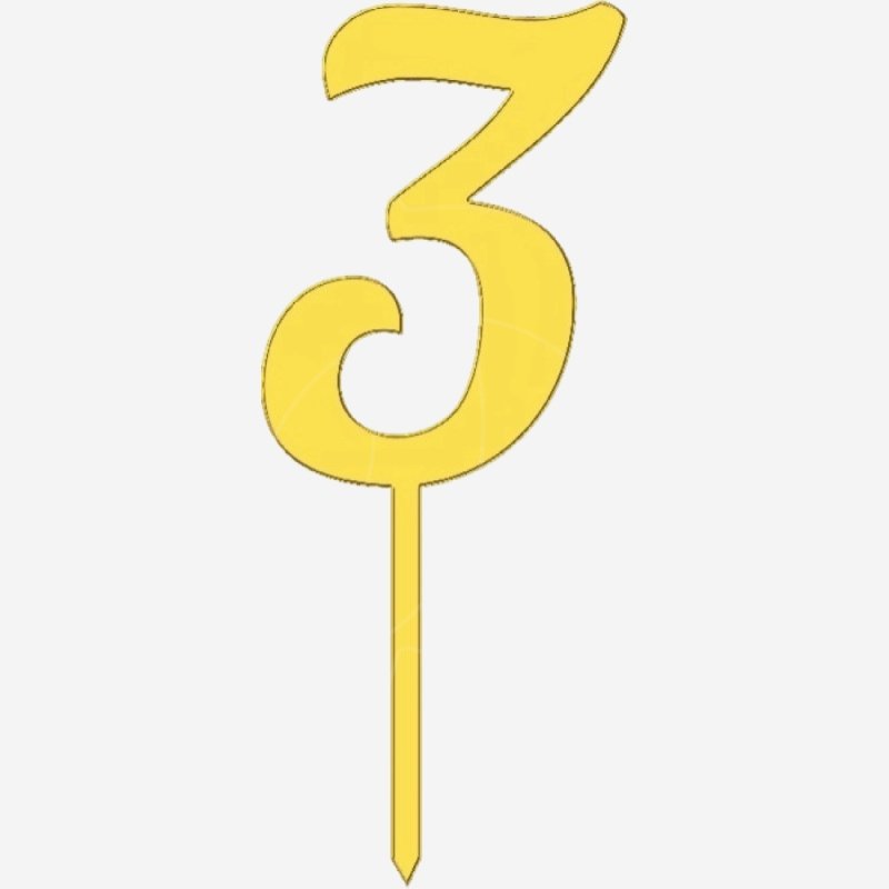 Доставка Топпер декоративный акриловый "Цифра 3 на палочке" Золото 5 см из магазина в вашем городе:
