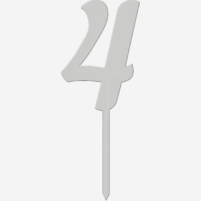 Доставка Топпер декоративный акриловый "Цифра 4 на палочке" Серебро 5 см из магазина в вашем городе: