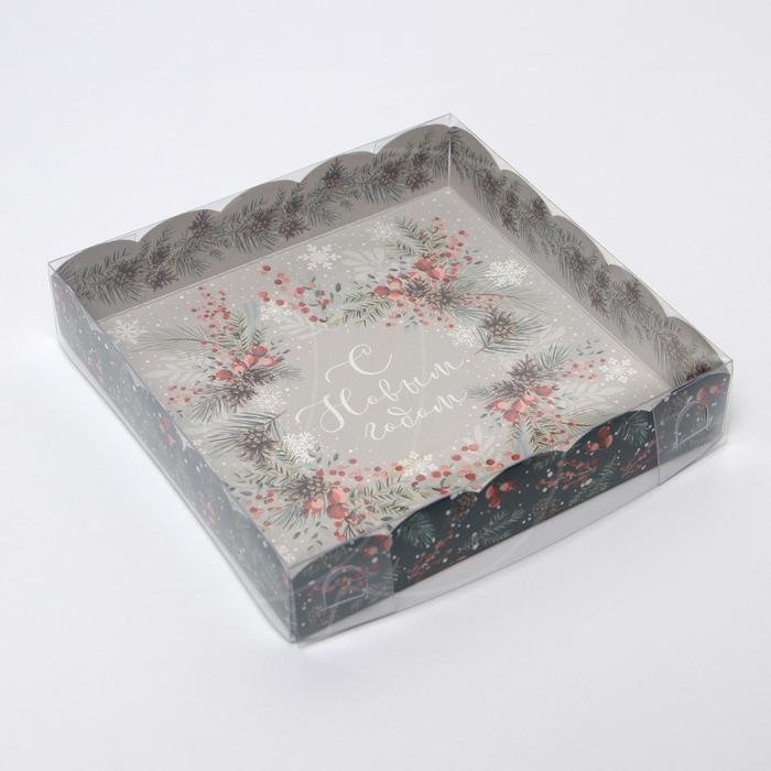 Коробка для сладостей с прозрачной крышкой "С Новым годом!" 15х15х3 см