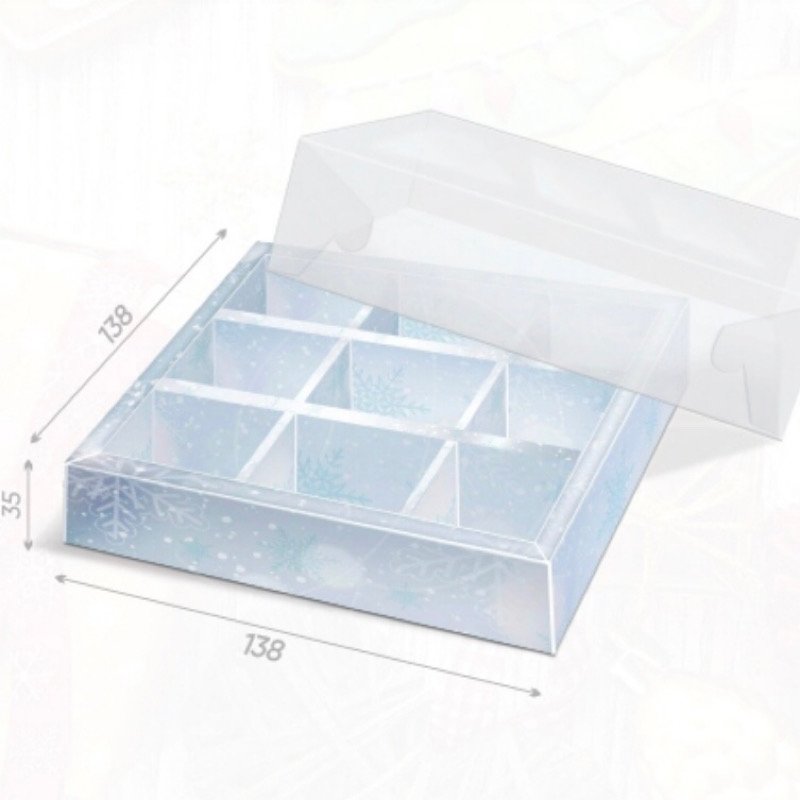 Доставка Коробка на 9 конфет с окном "Снежинки" из магазина в вашем городе: