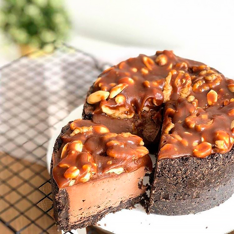 1. Измельчите печенье, смешайте с растопленным маслом и добавьте орехи.