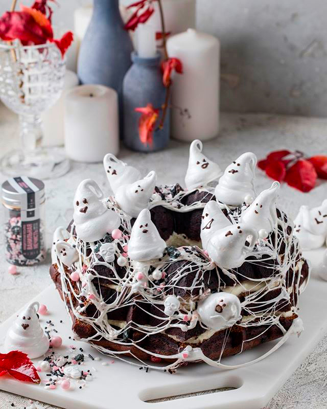 2. Украсьте паутинкой и приведениями из маршмеллоу и фирменной посыпкой MIXIE "Ванильная нечисть".